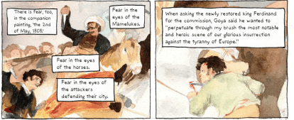 This is an interesting web comic, The Art of War by Sarah Glidden, that raises interesting questions about the nature of art particularly in regards to the relationship between artwork and its audience. Click on the image to see the webcomic. Below that is a handout version.